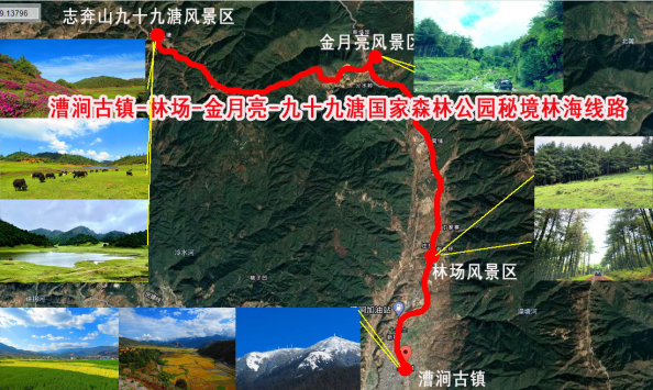 (1)线路特色:该线路主要从漕涧镇老街出发,途经漕涧国有人工林区、金月亮,最后抵达志奔山九十九塘,全程20公里。主要依托漕涧丰富的森林资源和优美的自然风光,一路前行,可以享受唯美的漕涧坝子风光。从漕涧林场开始可漫步林间步