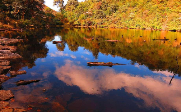 也因水而出名,在这里仰首能见峭壁对峙,怪石嶙峋。在登临漕涧梁子之巅时,立马有“会当凌绝顶,一览众山小”的震撼,也可“一步跨两州、一眼望三江”的心旷神怡。这里也有世界最小的“海”—漕涧红海,它藏于山间密林之中,她似皇冠上的明珠,也似巨大的玛瑙镶嵌在山巅。