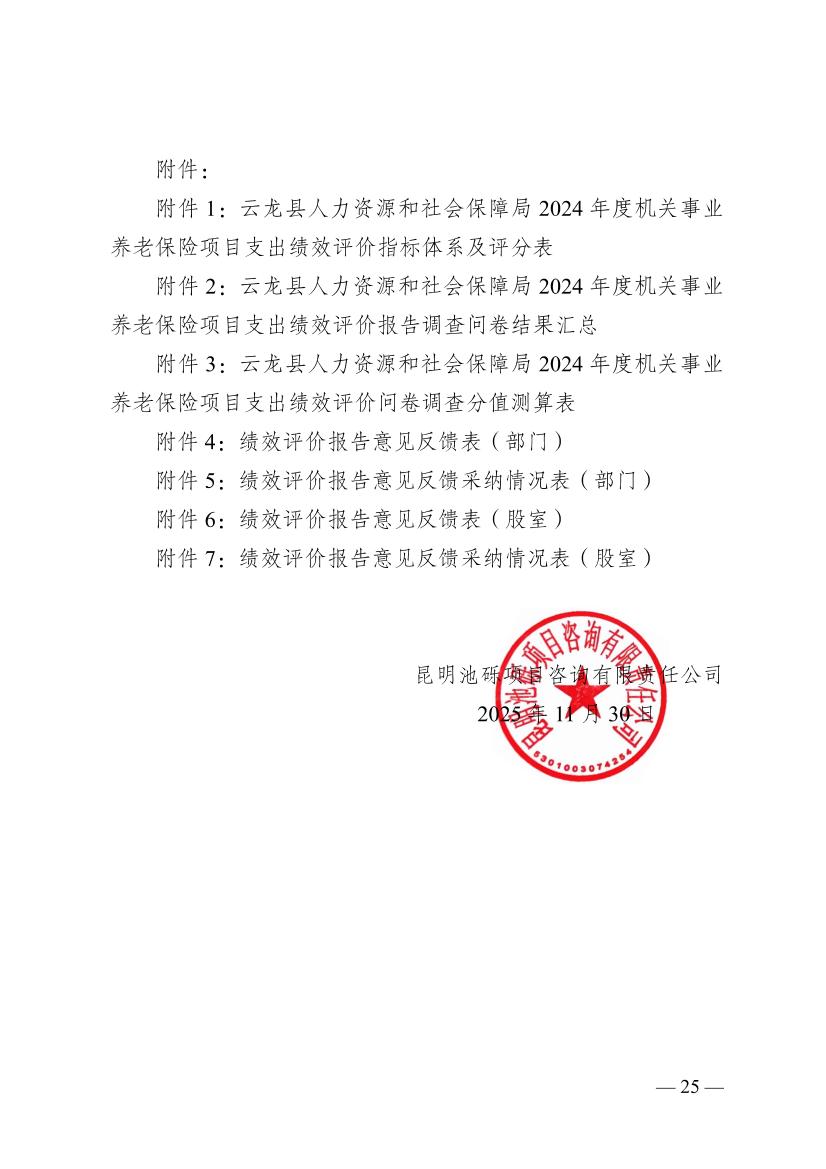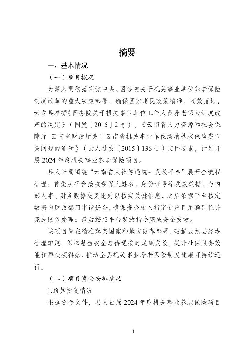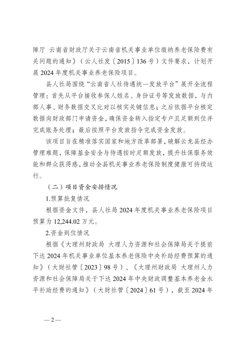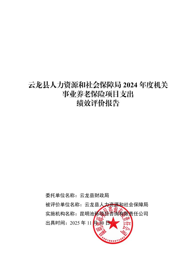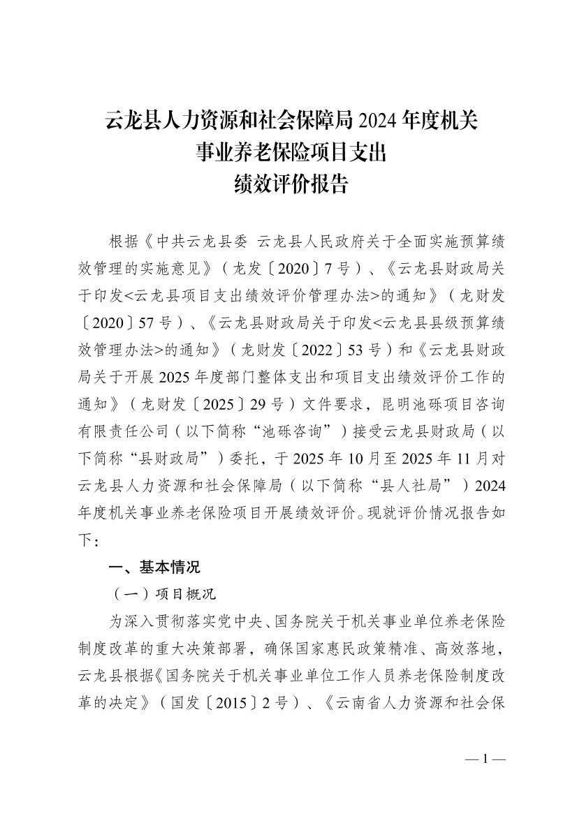 云龙县人力资源和社会保障局2024年度机关事业养老保险项目支出绩效评价报告云龙县人力资源和社会保障局2024年度机关事业养老保险项目支出绩效评价报告