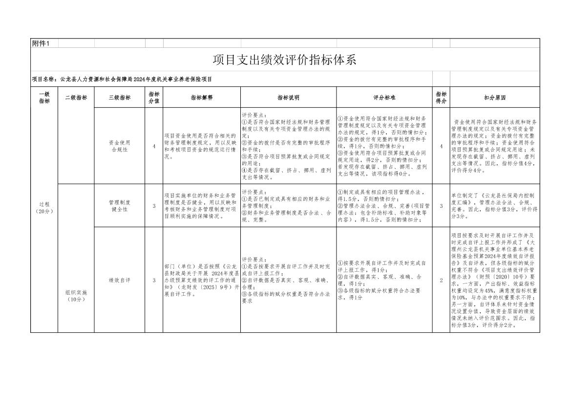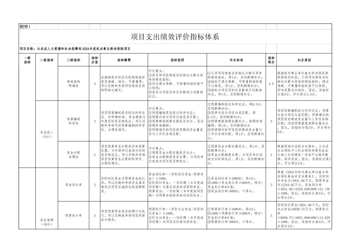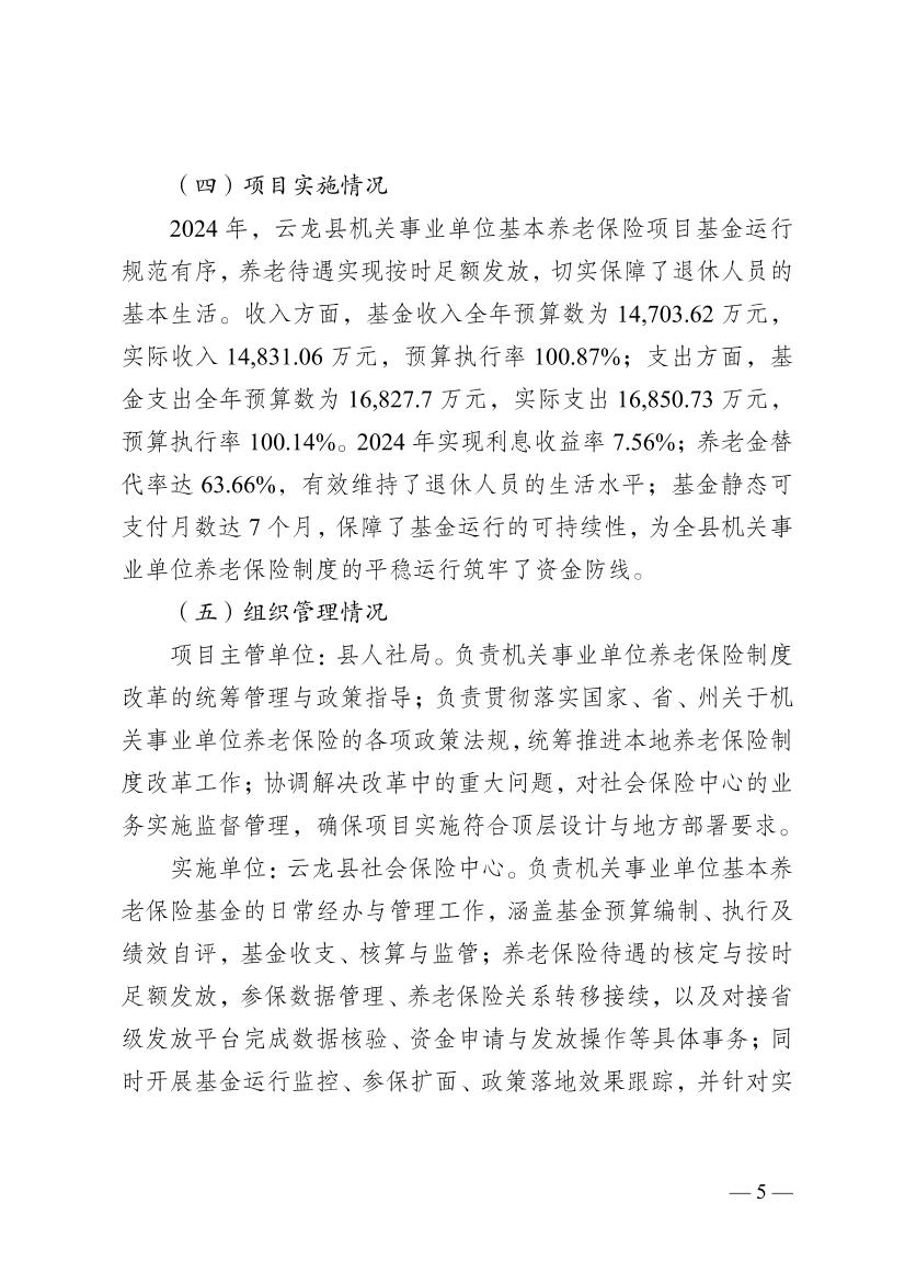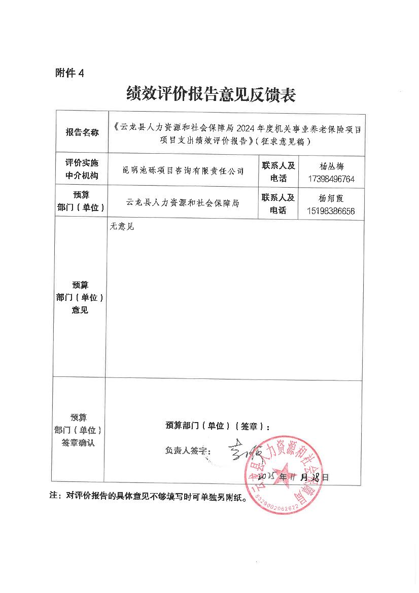 云龙县人力资源和社会保障局2024年度机关事业养老保险项目支出绩效评价报告云龙县人力资源和社会保障局2024年度机关事业养老保险项目支出绩效评价报告
