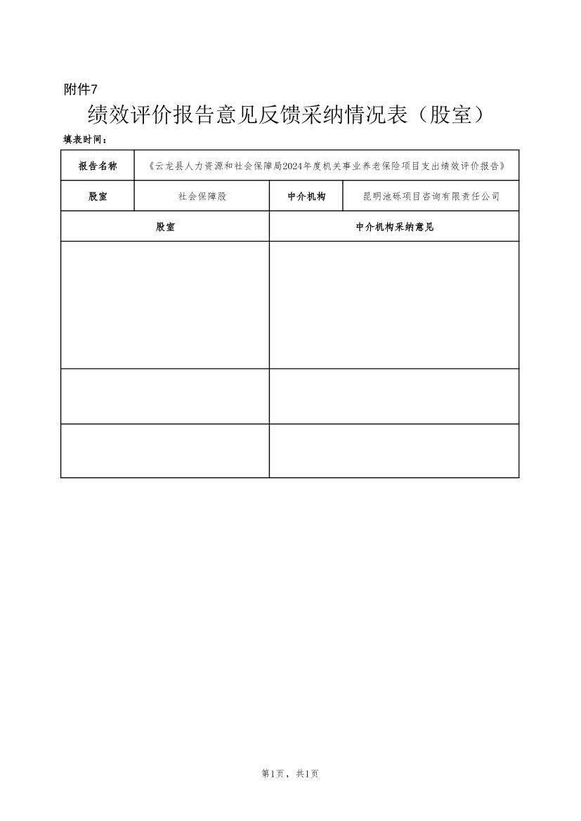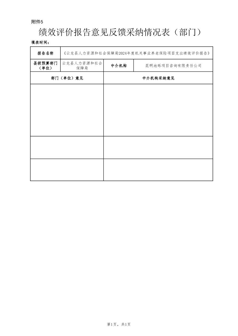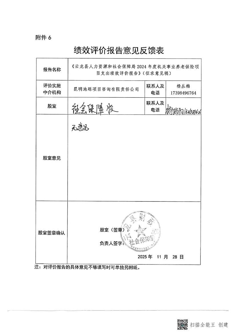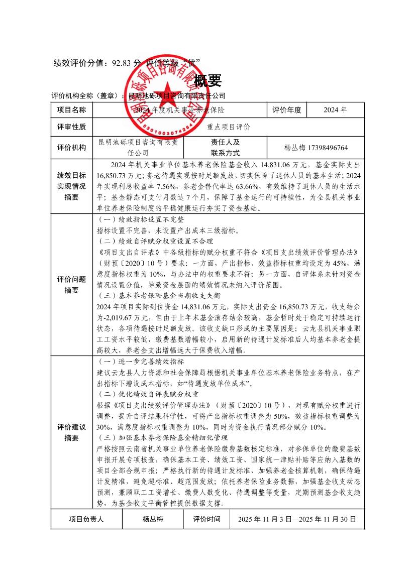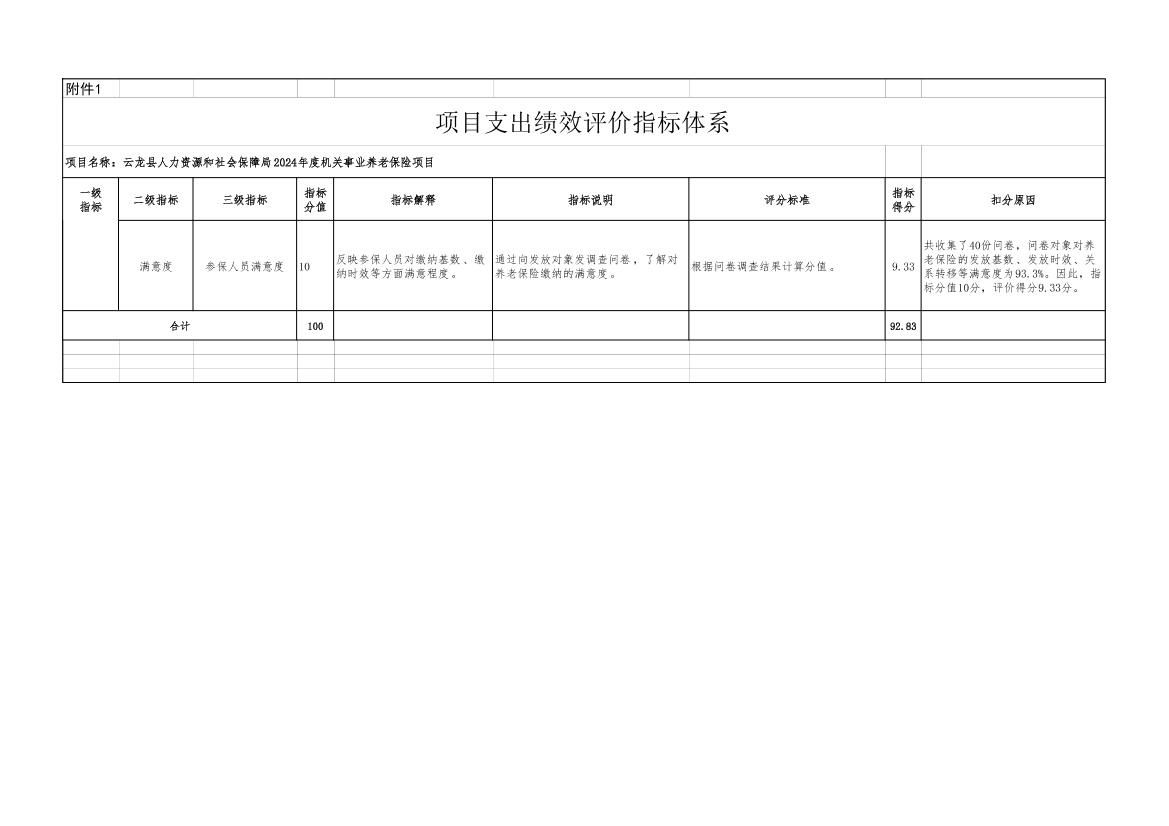云龙县人力资源和社会保障局2024年度机关事业养老保险项目支出绩效评价报告云龙县人力资源和社会保障局2024年度机关事业养老保险项目支出绩效评价报告
