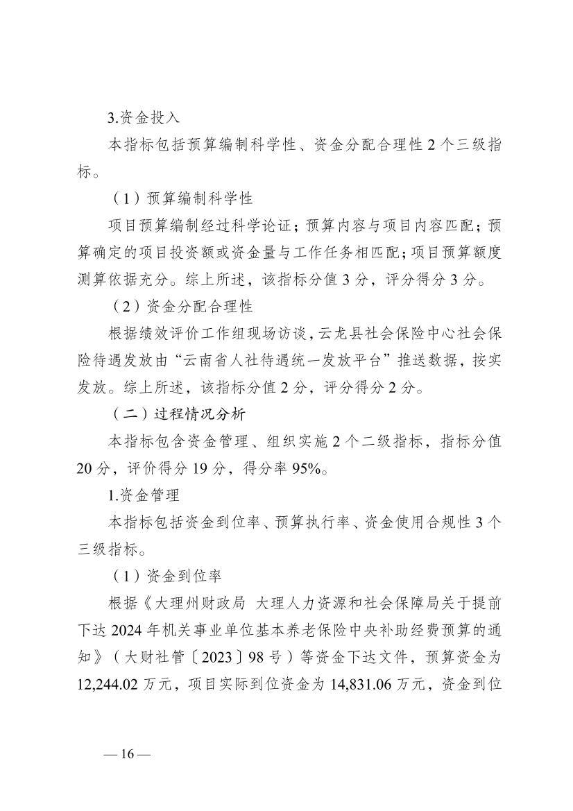 云龙县人力资源和社会保障局2024年度机关事业养老保险项目支出绩效评价报告