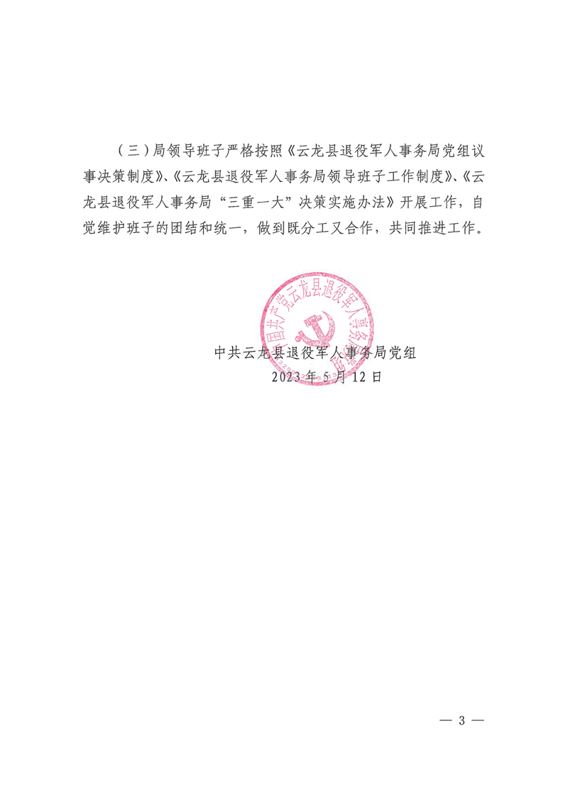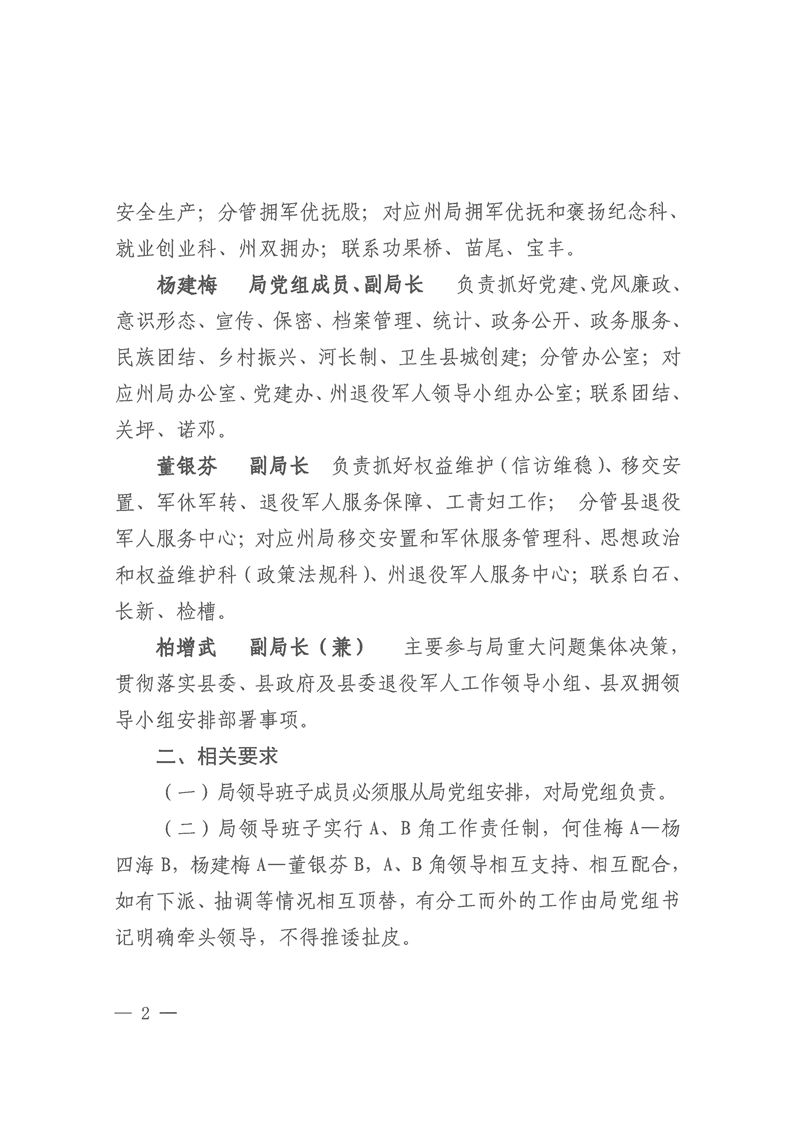 中共云龙县退役军人事务局党组关于调整领导班子成员工作分工的通知