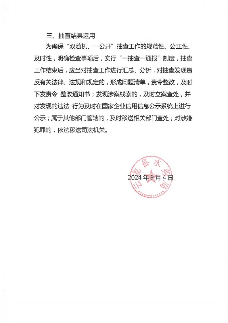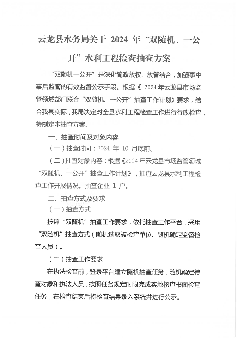 云龙县水务局关于2024年“双随机、一公开”水利工程检查抽查方案