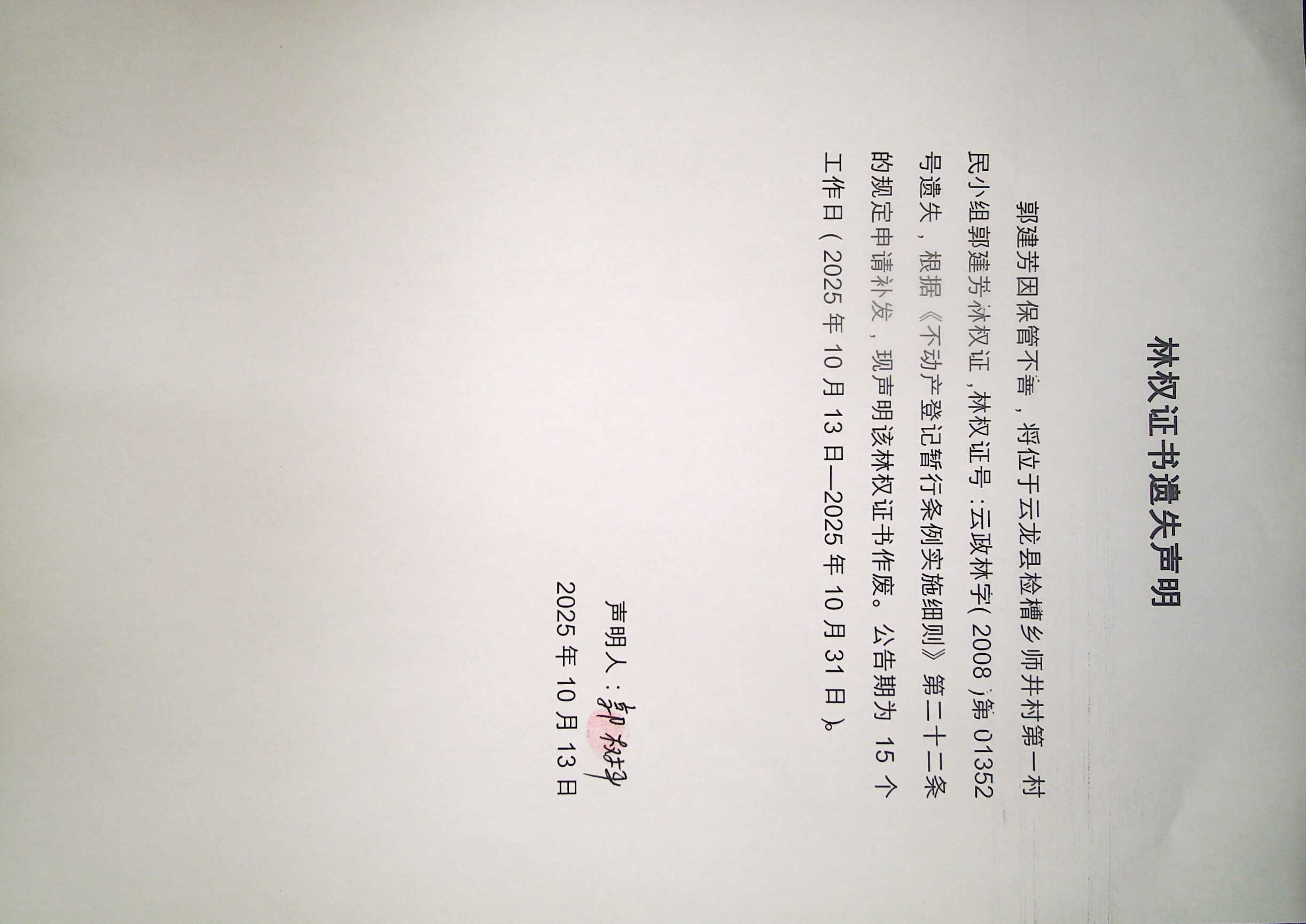 郭建芳林权证遗失公告