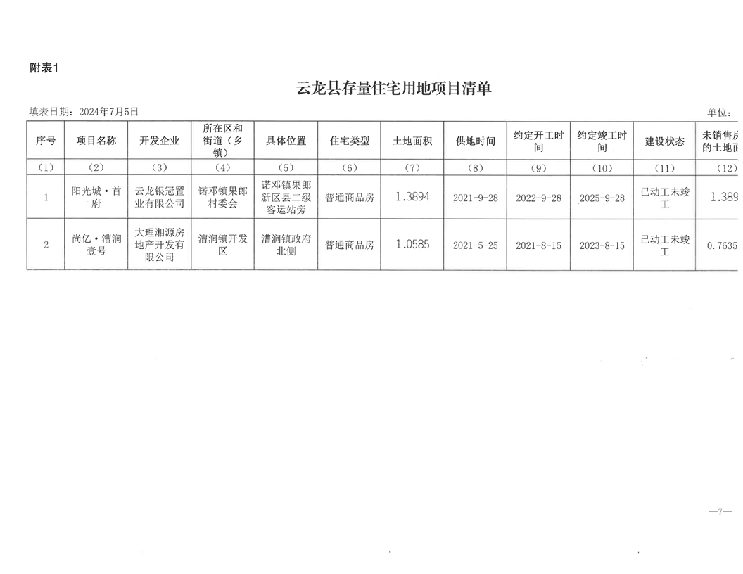 云龙县存量住宅用地第二季度信息公示