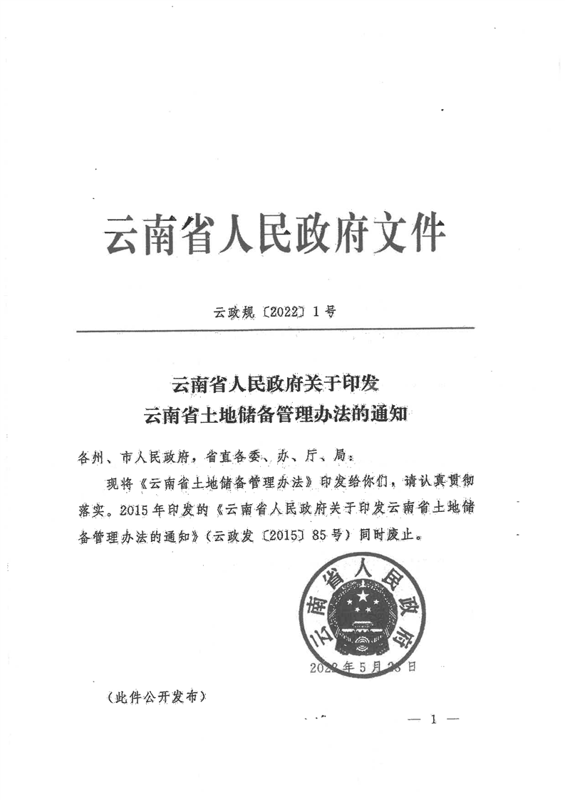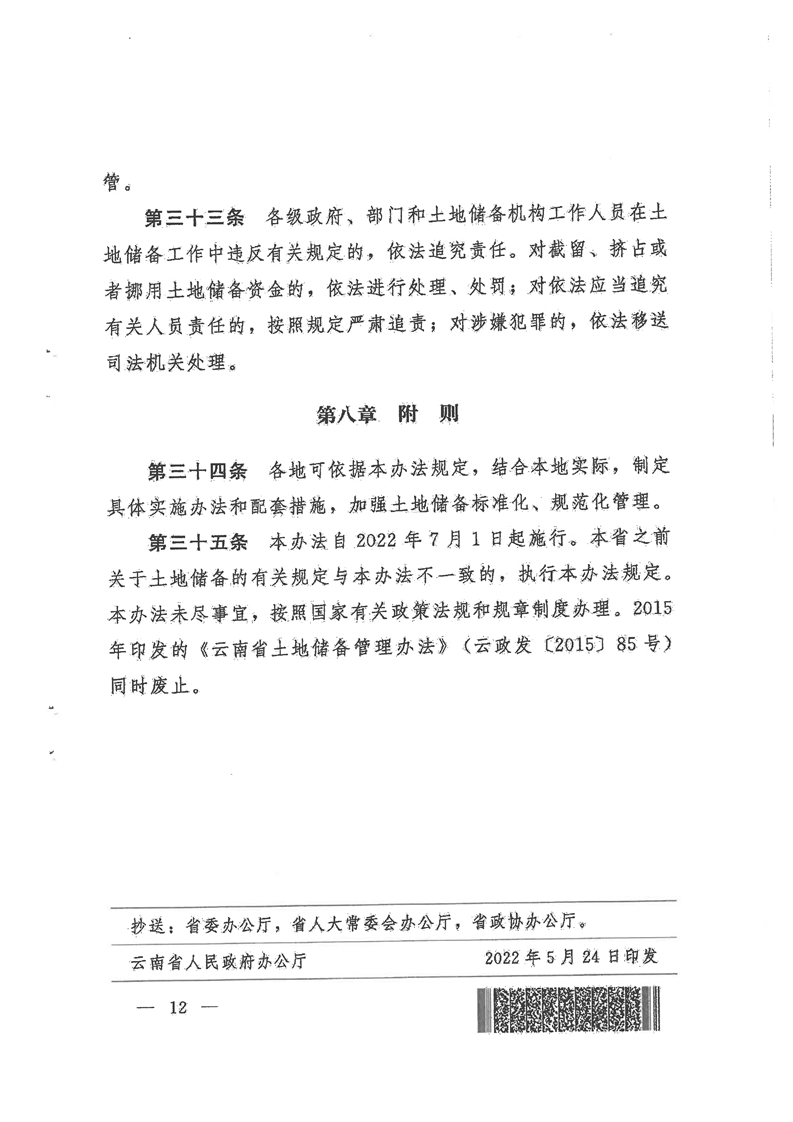 云南省人民政府关于印发云南省土地储备管理办法的通知