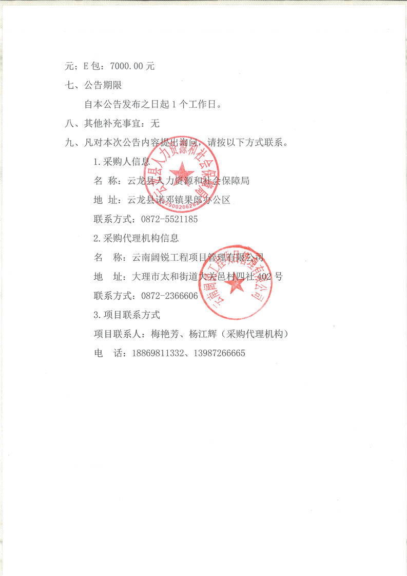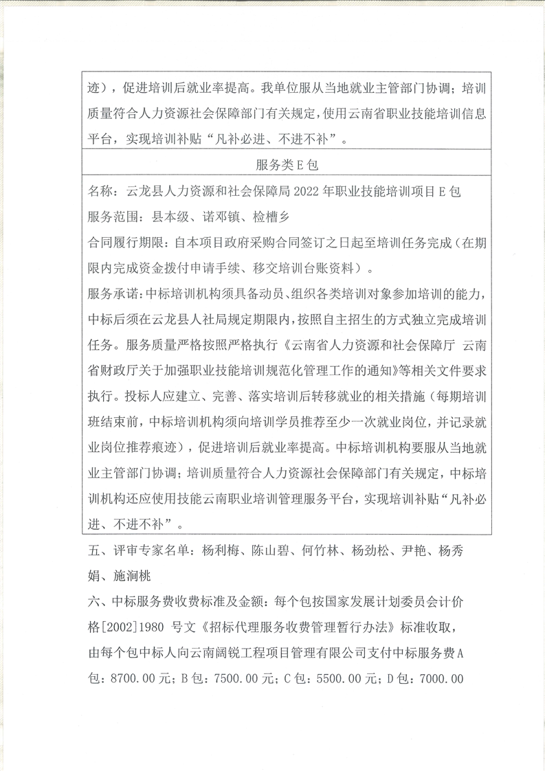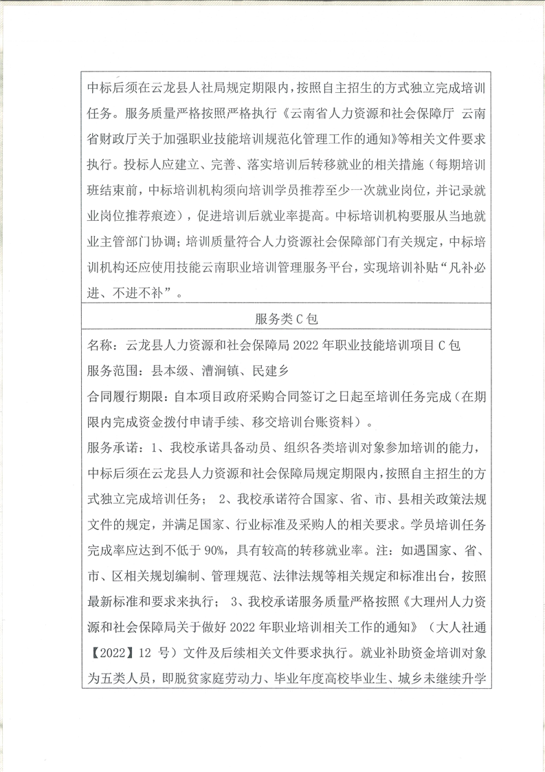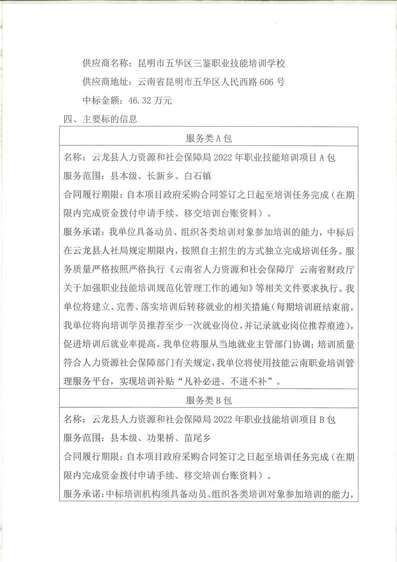 云龙县人力资源和社会保障局云龙县2023年职业技能培训项目中标结果公示