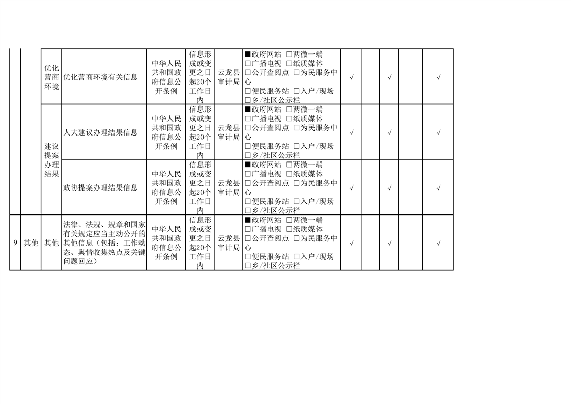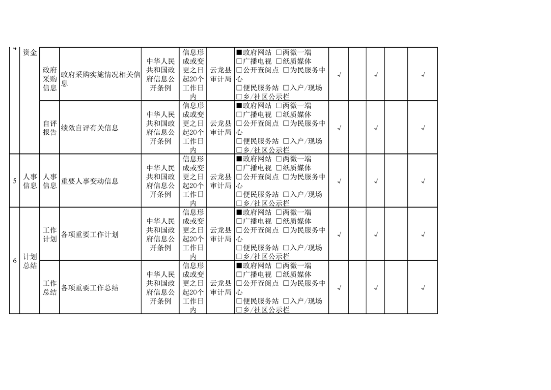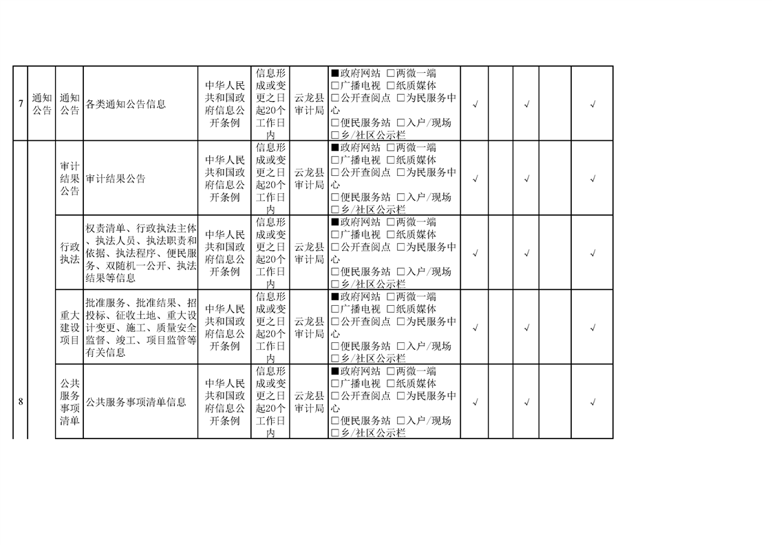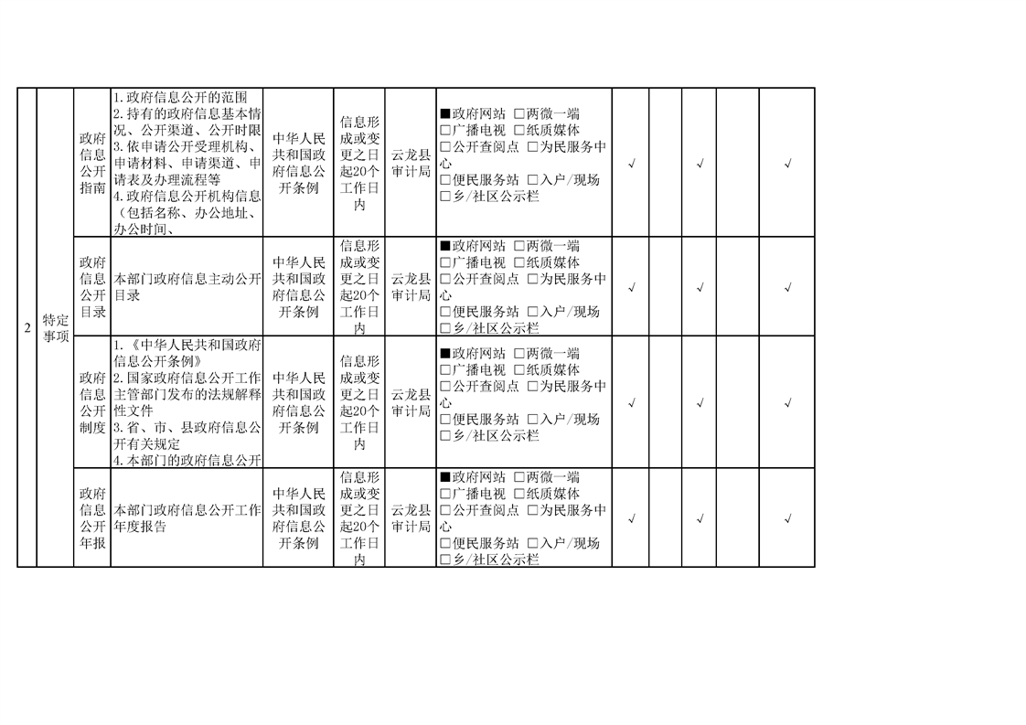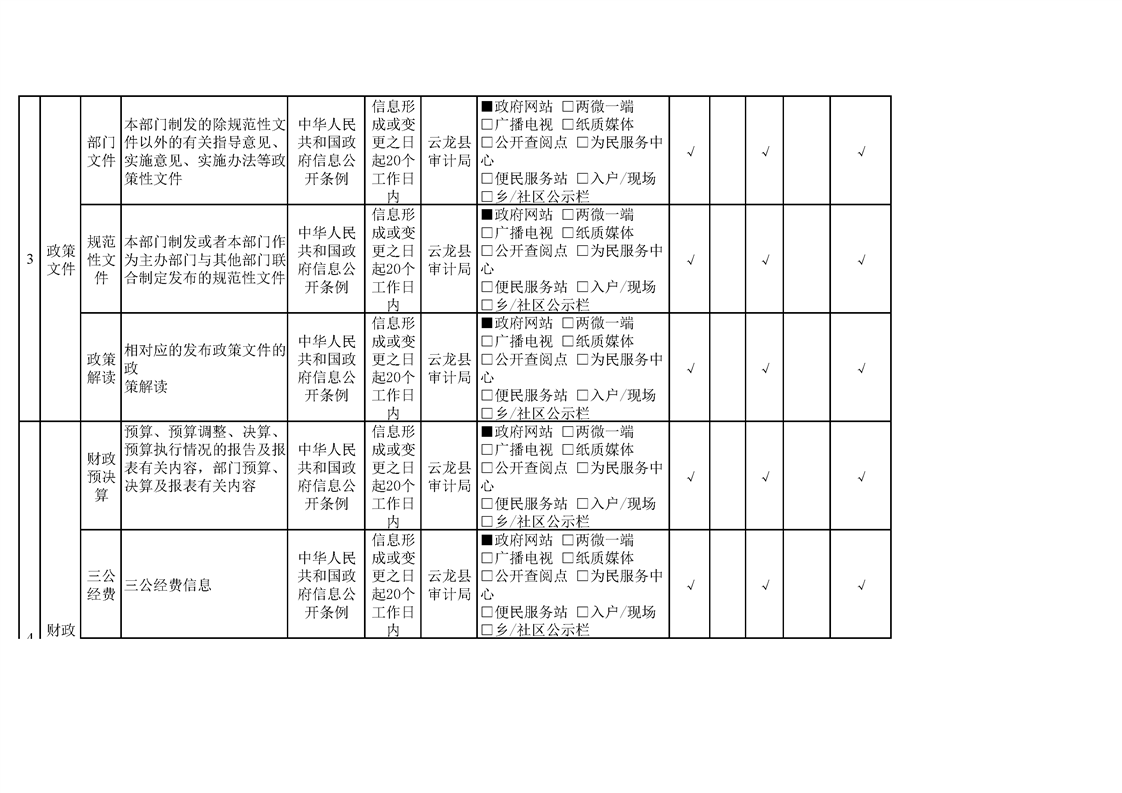 云龙县审计局政府信息公开基本目录